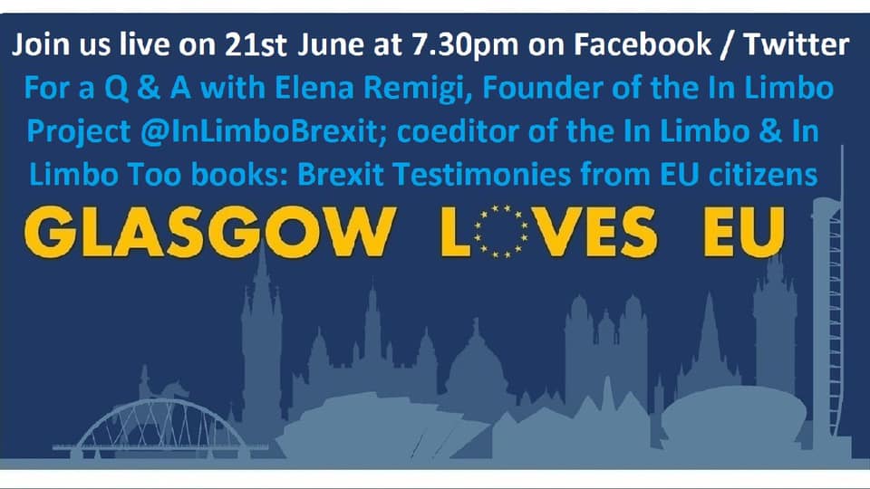 In this week’s Lockdown Livestream Glasgow Loves EU are talking to Elena Remigi, founder of the In Limbo Project and coeditor of the In Limbo & In Limbo Two books: Brexit Testimonies from EU citizens.