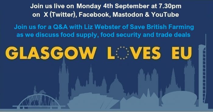 “Join us for a Q&A with Liz Webster of Save British Farming as we discuss food supply, food security and trade deals.”